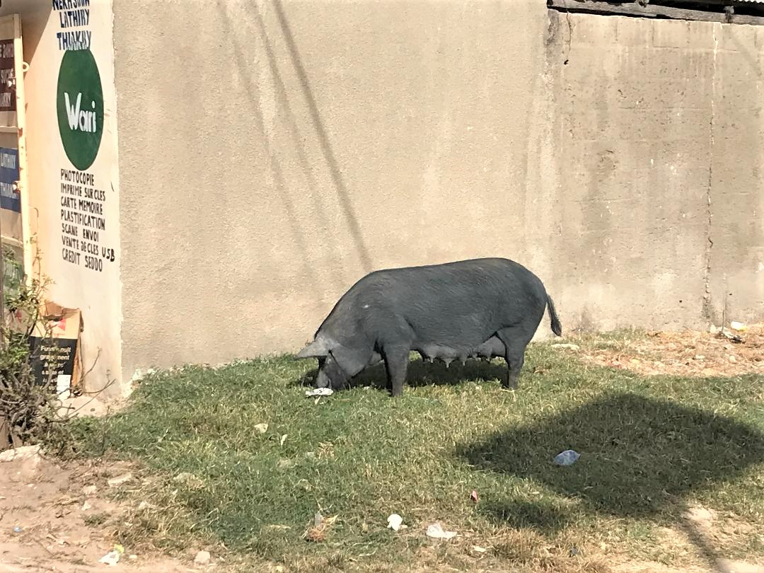 Once off the ‘party ferry’ we drove straight through the small capital city of Banjul into a different town ten times the size where we were camping for the next couple of nights. Banjul was a city of clean, wide roads, little traffic and an air of calm. The larger town of Serrekunda was rather different! A street market ran for about 5 km and we didn’t get over 10km for nearly two hours as we crushed through the throng of people, donkeys and goods. I was struck, however, at how quiet it was – there was no loud shouting, car horns, babble of chatter. Everyone was going about their business calmly and quietly, just a low hum of activity – it was lovely.