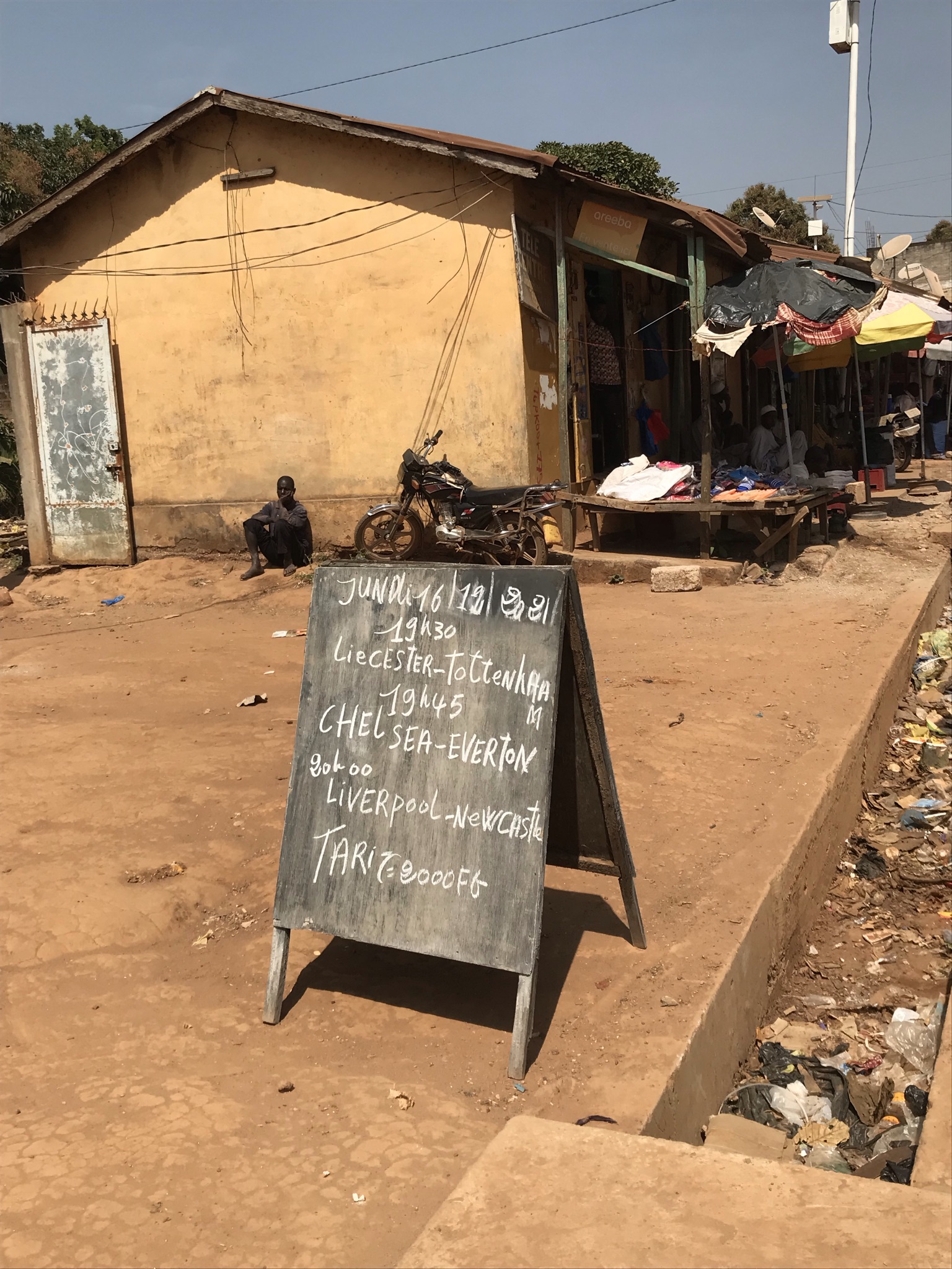 We eventually found a Total fuel station selling chocolate and Pringles but still no beer. Maps.me said there was something called ´Liquorstore´ 1km away so, despite it now being dusk, the three of us marched off. It got darker and darker, one of our party was hit by a passing motorbike on his arm, we started to attract more attention from the locals and evenutally our trek took us to a part of town which didn´t feel quite so friendly. And no Liquorstore, it just didn´t exist – we started asking around before realising we were in the Muslim part of town so gave up and spent the next half an hour walking the back streets of Labe in the dark trying to find our way back to the guest house.