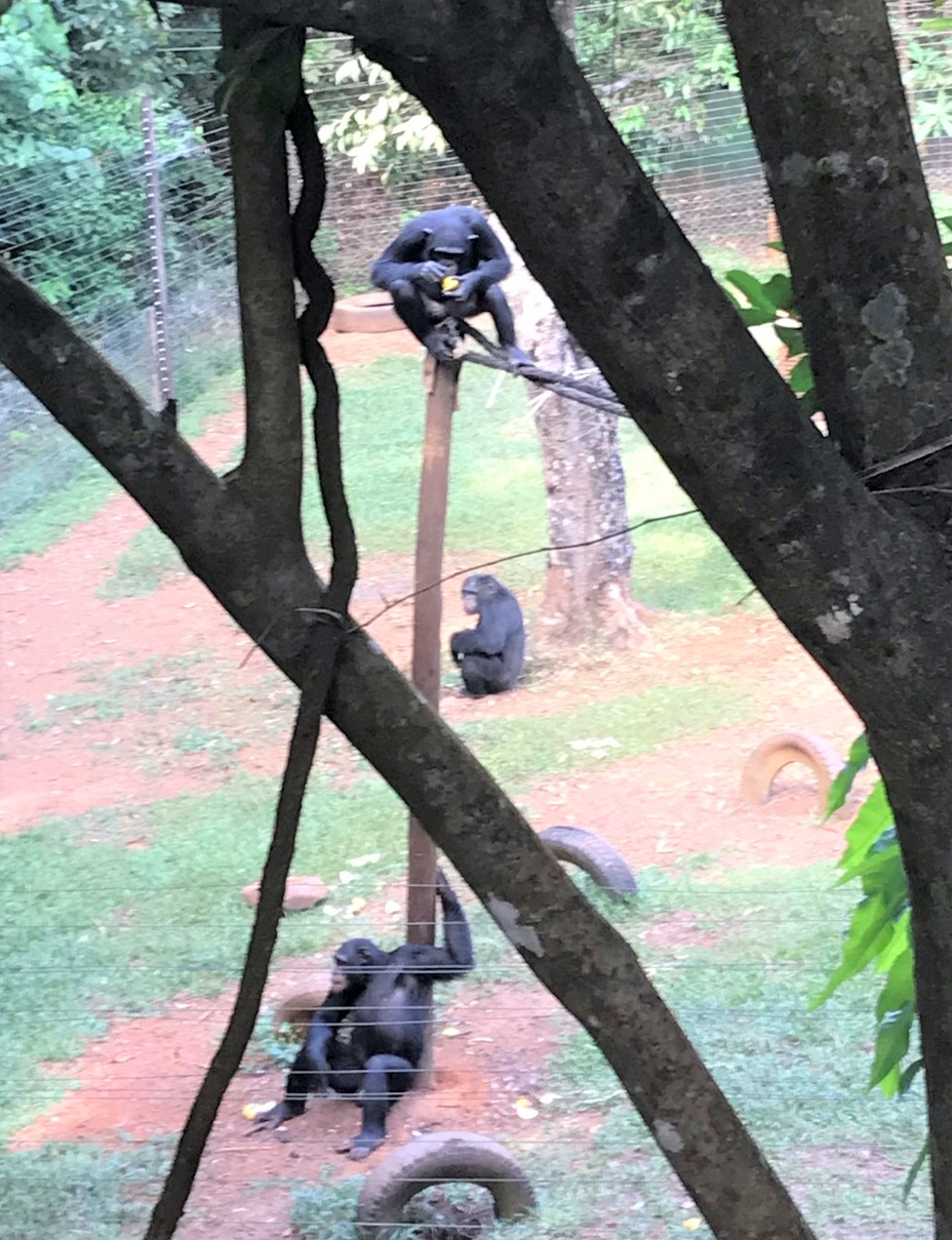 Eventually two of our friends arrived and we flagged down a taxi to the Chimpanzee sanctuary just out of town. Not a zoo, as they kept telling us, a sanctuary for rescuing Chimps who had been kept in homes (which is now illegal) and rehabilitating them into the wild.