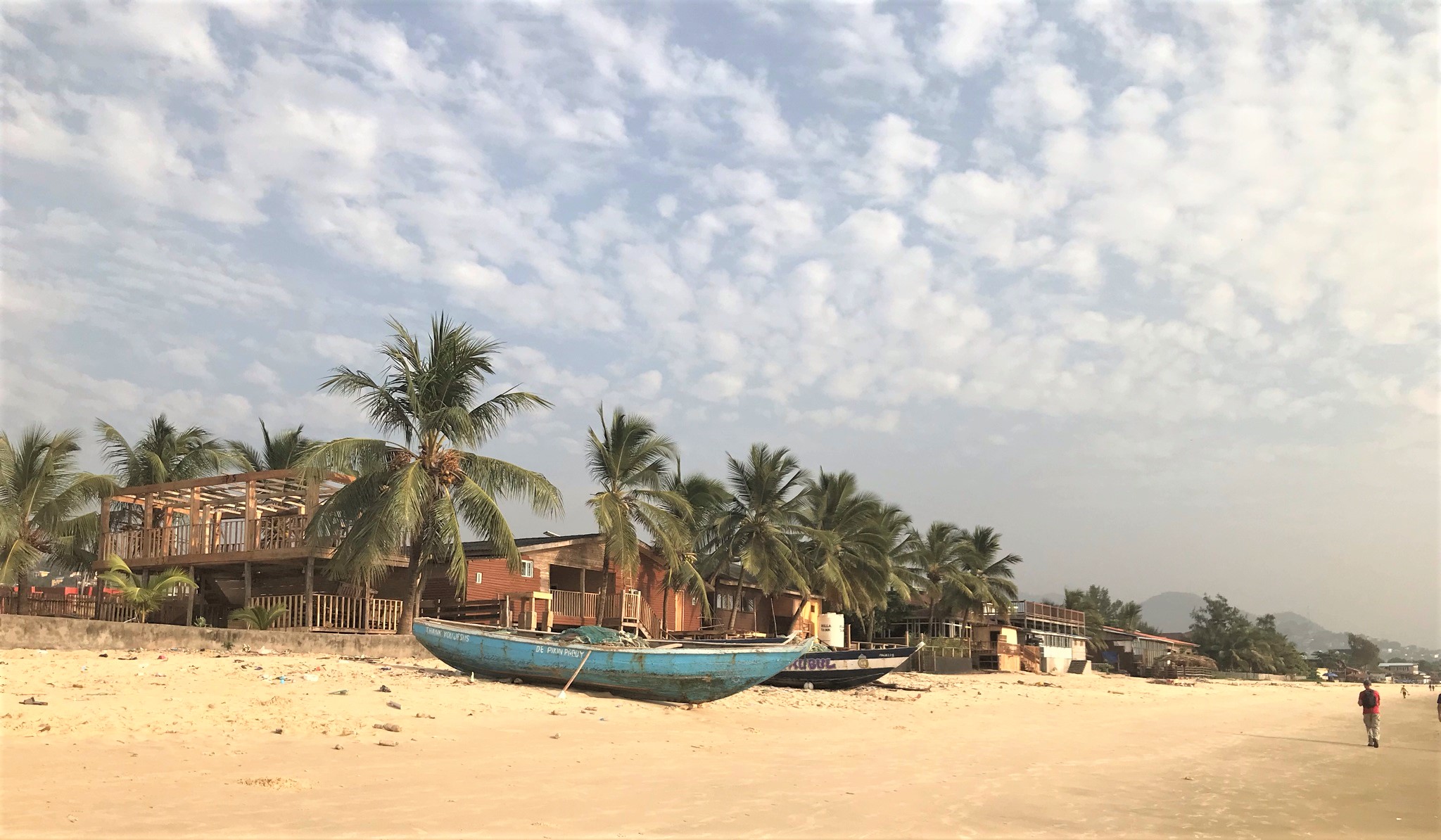 It is a city of two halves. Expensive cars, the Freetown Mall, lovely guest houses, cafes and restaurants intermigle with desperate poverty. We were stopped regularly by people needing money, followed down the street by well spoken folks telling us their life story and how desperate they are for help to escape to a better place. Almost everyone was friendly, pleased to see tourists, happy to give up their time to help if we needed it. But there is a large, open sewer running through the slums used by children as a toilet and pigs as their home. Colourful tuk tuks race around the city beeping their horns and brandishing their slogans whilst others carry Christmas boxes begging for spare change to help them through. It was sad and uplifting at the same time.
