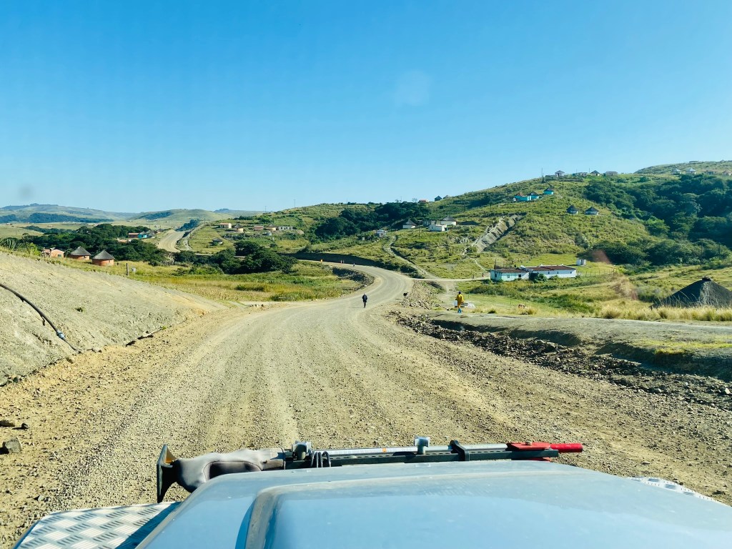 I was navigating, James was driving – almost certainly the better combination in such circumstances. I set the sat nav to take us back to where we had started and we followed it until we reached a road recognised by Maps.me – in other words, a real road not one our sat nav had made up! Once on a Maps.me road I switched the sat nav off and told Maps.me to take us to the Drakensbergs. Little by little the roads widened, smoothed and eventually turned into tarmac. We were out of the woods!