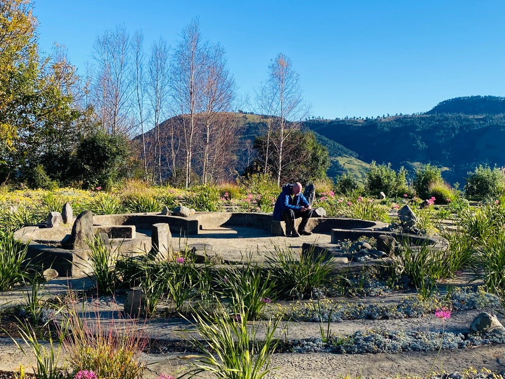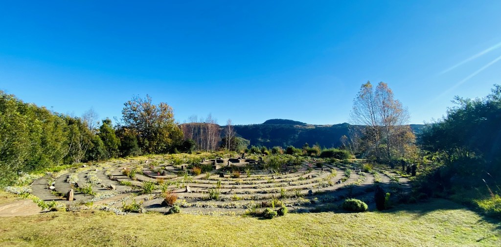 The same day we visited a labyrinth. Set in the grounds of a backpackers hostel it was designed for meditation and contemplation. James walked straight across it and sat in the middle waiting for me to walk the 1.4km route through.