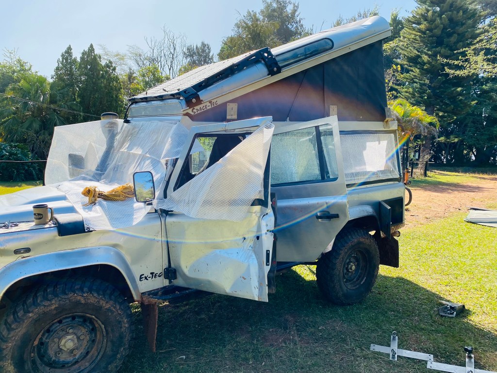 Over the course of the next few days I contacted all of them and got wonderful responses from everyone. Apparently we were now famous within the Landrover community in South Africa! Everyone knew about us and wanted to help. I contacted one company with a short one-liner about rolling our Landrover and needing help with extensive damage to the body. In response they sent me our own photo of Henry on his roof and said ´This is you, yes??´ Urm, well, yes!