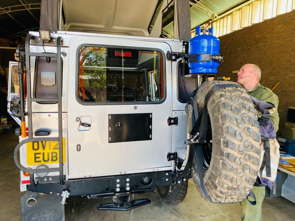 So now the back door is light as a feather with all the weight held on the chassis. And the wheel even swings away from the door altogether if you want it to. Big improvement number three after the galvanising and removal of the catalytic converter….