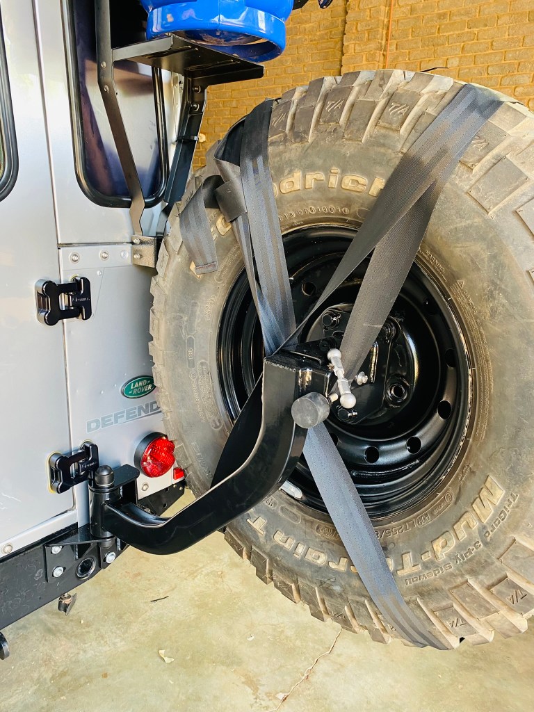 With the frame, roof and doors now on it was really just the finishing touches to go. His back door was looking a little bare without the spare tyre and we had bought a rugged new swing arm to hold it in place that would be a big improvement from the old one.