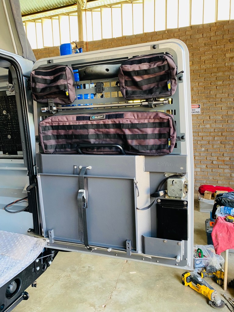 The back door was finished off with the table, mesh and storage bags inside…