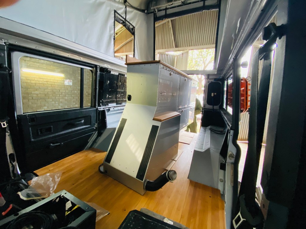 Next was the large unit on the driver´s side. The heaviest, most awkward unit – but also the one that had saved James´ life. This step also meant plumbing the water back in and attaching the electrics so was a big job.