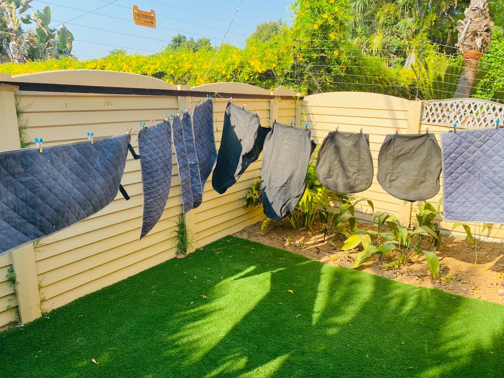 Meanwhile, back at the guest house, we were busy washing the seat covers and blinds, all caked in mud and dirt from the accident!