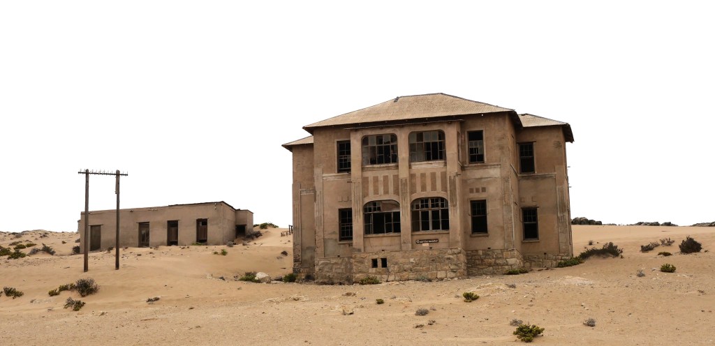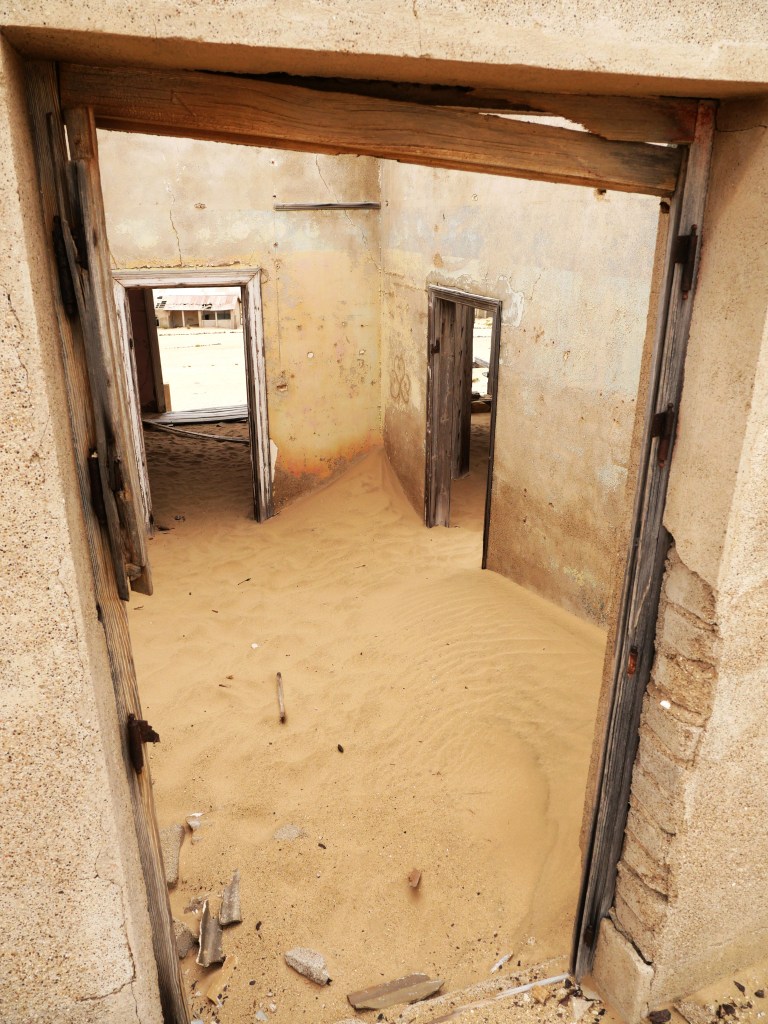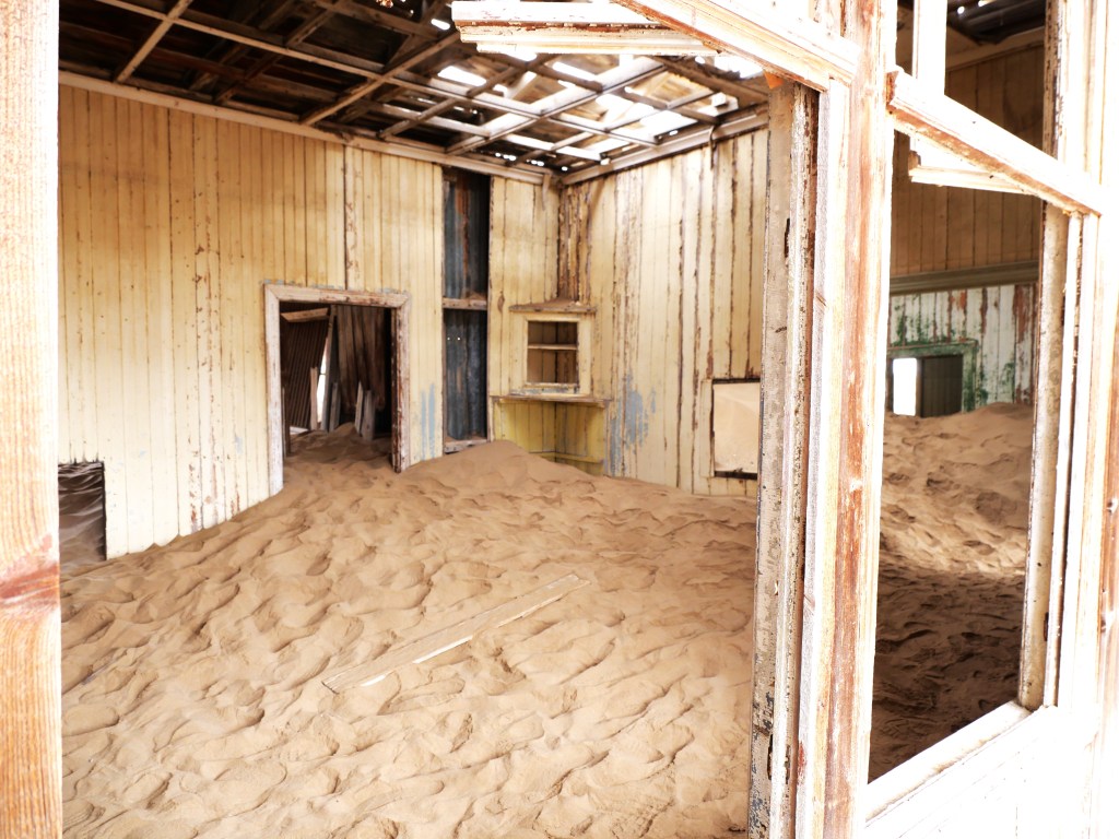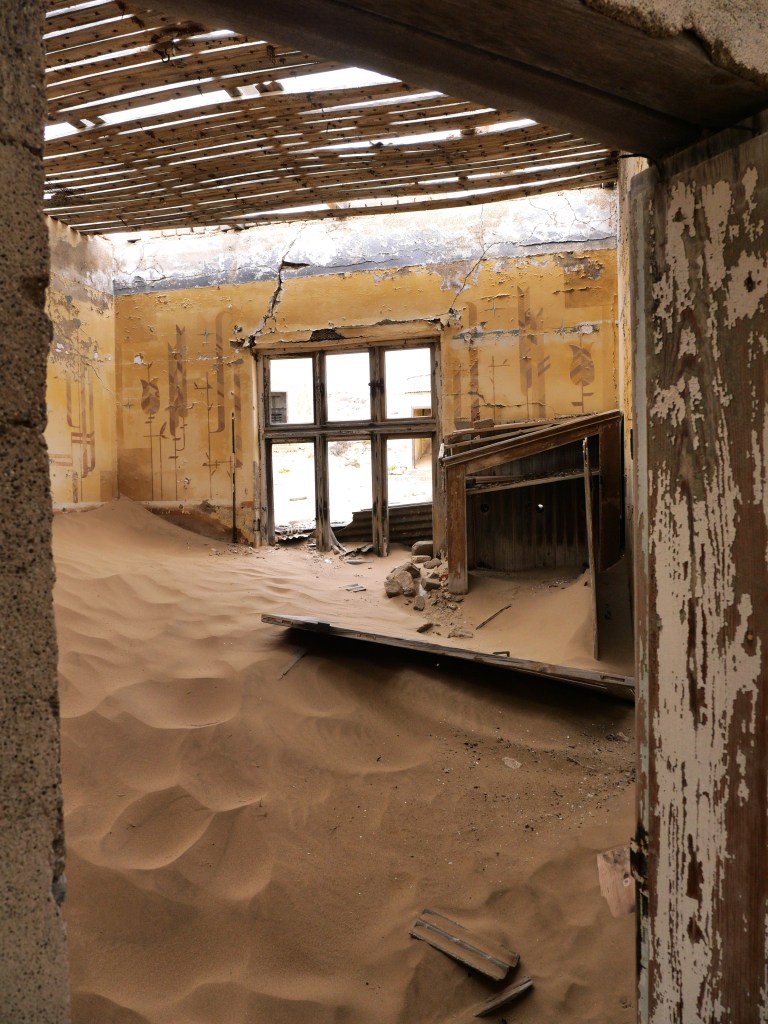 By the late 1920s bigger diamonds had been found further south towards the Orange River and Kolmanskop was abandoned to the desert. It is now an eery and desolate place filled with once-magnificent buildings now eaten by the sand.