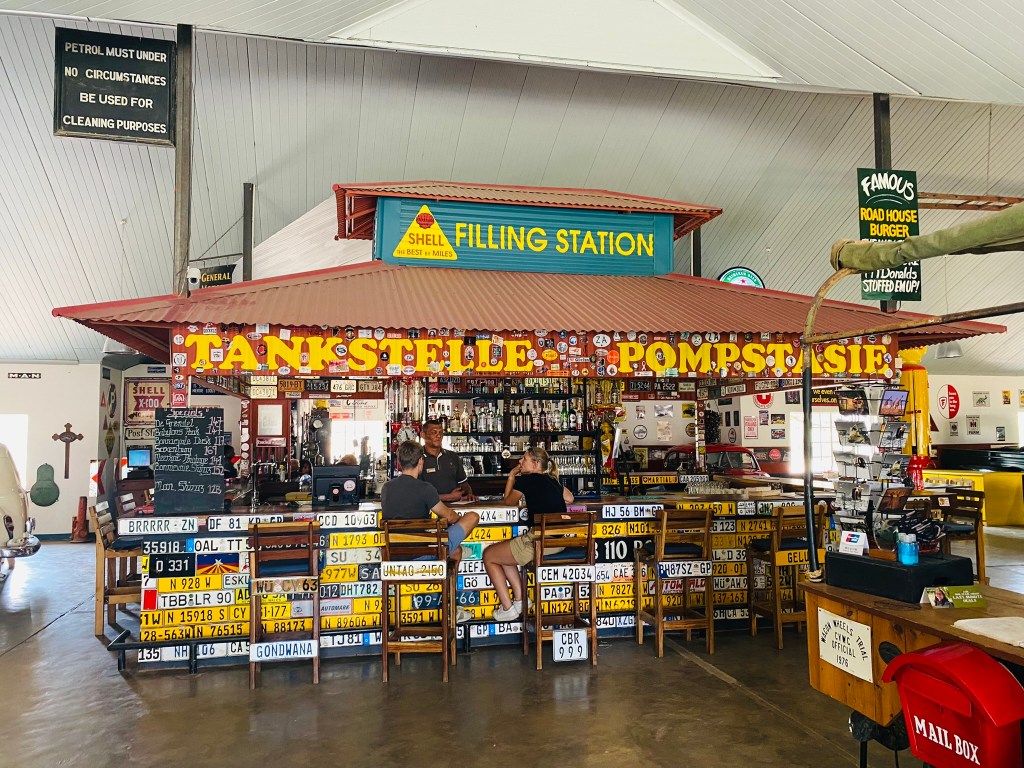 We just had to stop for a late lunch, it would have been rude not to! One minute we were feeling vulnerable in a relentlessly remote, hot and dusty landscape, the next we were eating chicken strips and salad whilst sipping ice cold drinks! Such is the paradox of Namibia!