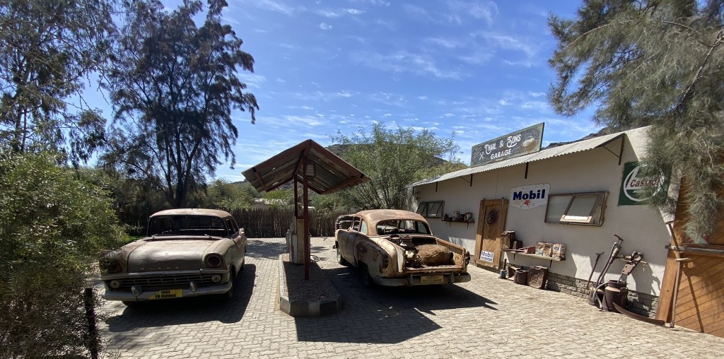 We were at a cross roads in our Namibia trip. Swakopmund represents broadly the half way point in the country. We were moving from the barren, dry, sparsely populated south into the hotter, wetter north where both people and game are more numerous. Apparently the north is more ´authentic´ than the south but with much worse roads. I wasn´t sure how the south was inauthentic, maybe the reference is to places like Sossussvlei and other prime tourist sites rather than the farms and deserts we had been visiting. And as for the roads – god help us if the southern roads were the good ones!