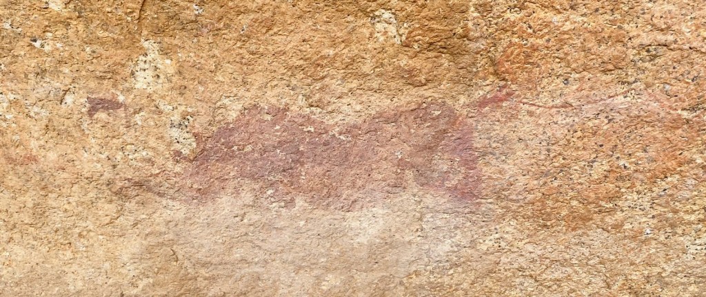 Back on safe ground, we headed towards the site of the famous Spitzkoppe rock paintings to see if we could find a guide to take us up. Eddie was waiting in his hut at the bottom of the mountain, an official guide and a very patient man. We looked up to the route we would need to take – it was a sheer climb up the mountain side infinitely higher than the Rock Arch with only a chain rope for assistance.