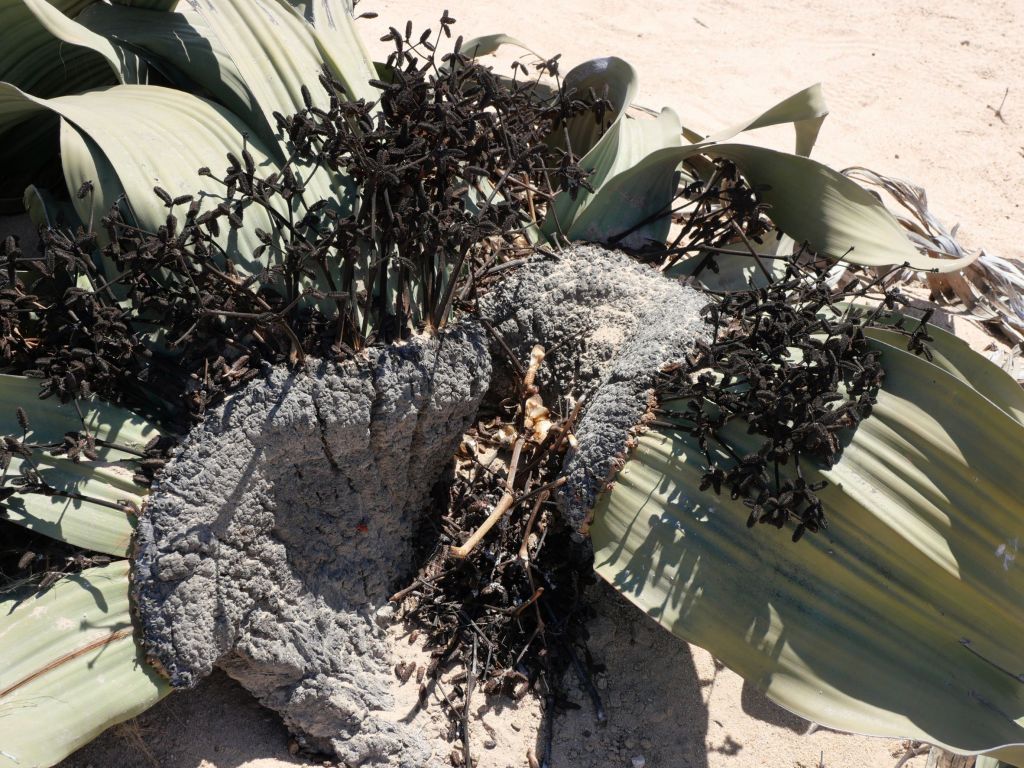 Welwitschia is the national plant of Namibia, seen on its National Coat of Arms. You would think, therefore, that it must be a beautiful thing. You would think wrong! It is the strangest plant you will ever see – sitting in a half-dead heap on the ground looking for all the world as though it has been run over by a string of Landrovers.