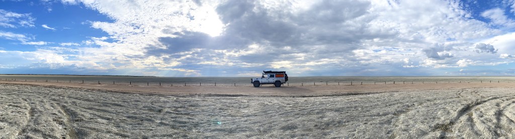 Henry was dwarfed by the scale of the Etosha salt pans that lend the national park its name