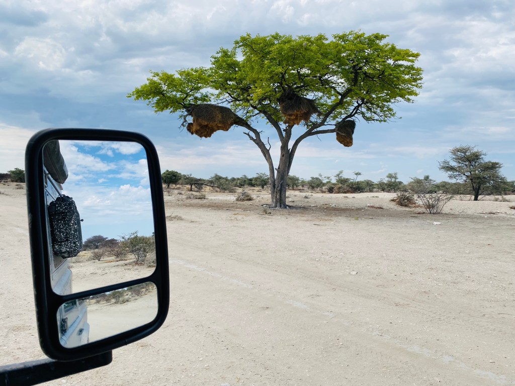 At our second campsite we parked under a tree where a nest of Sociable Weavers had made their home and surrounded us every evening waiting to see what morsels were dropped