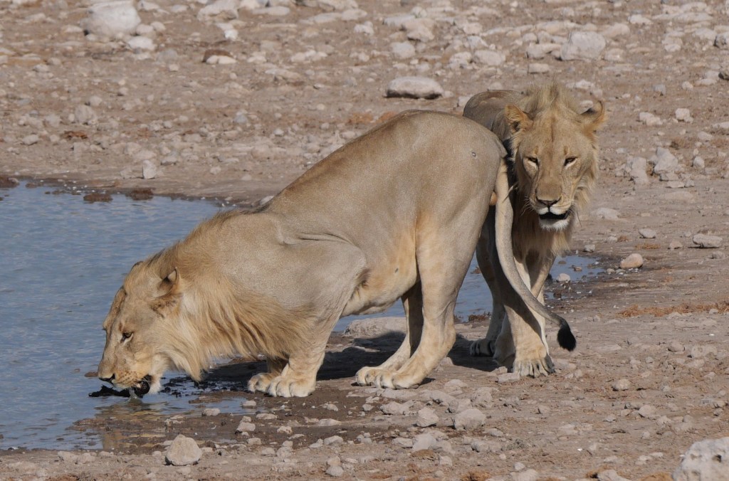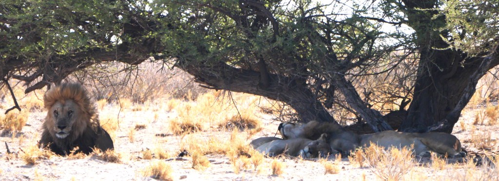 Two adolescent males were sitting just around the corner. They would have been brothers and almost certainly the children of the two adults, making up a pride of four. Eventually these two will move away from mum and dad and find a pride of their own but will almost certainly stay together for life.