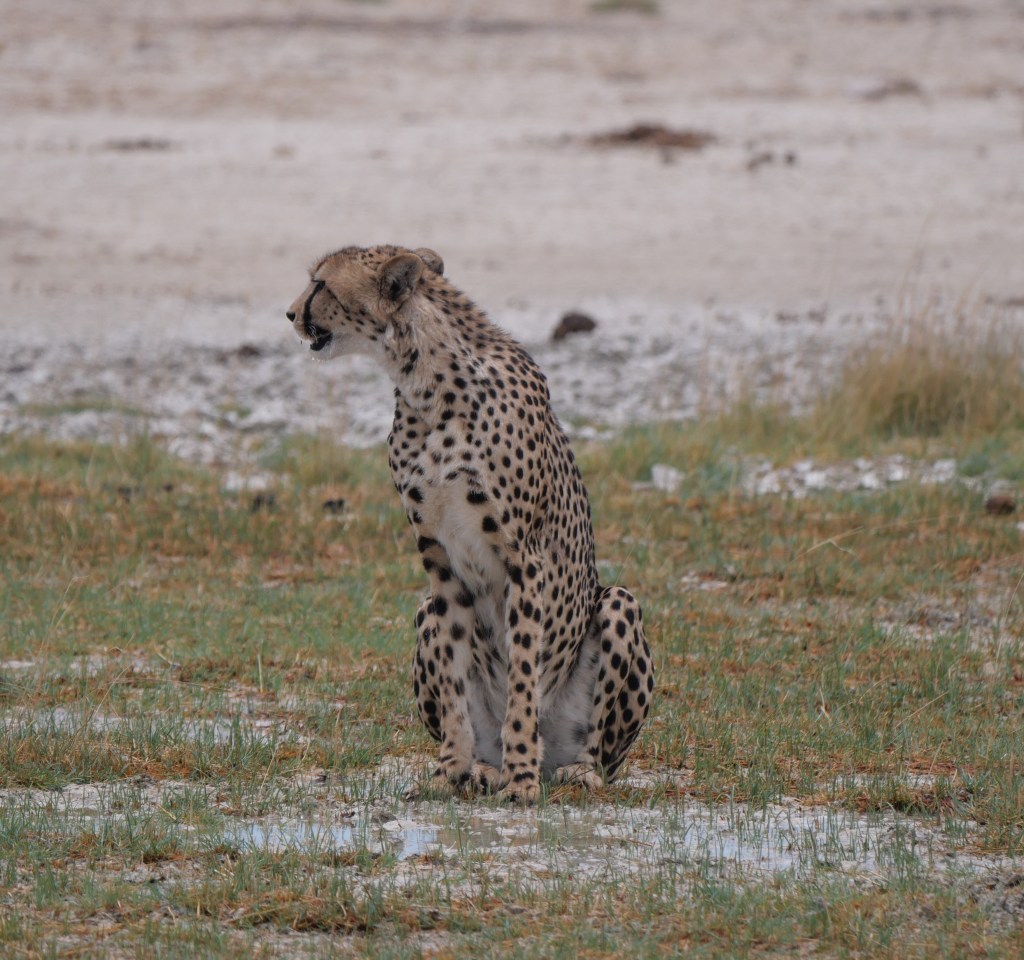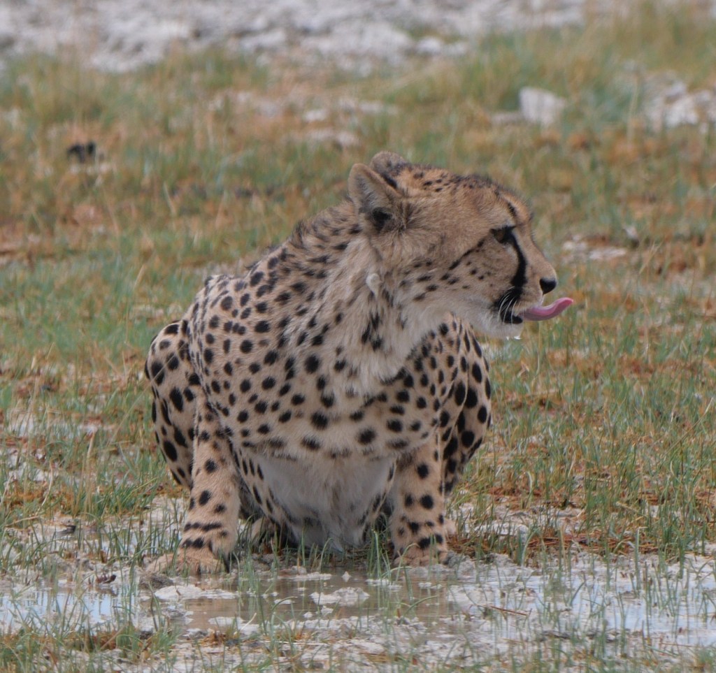 We were thrilled to find another cheetah, this time having a drink from a puddle right by the road