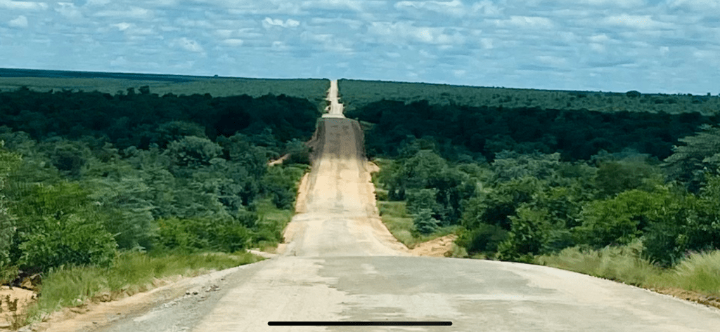 The road was long and straight but fairly easy going. Our view hardly changed for 3 hours