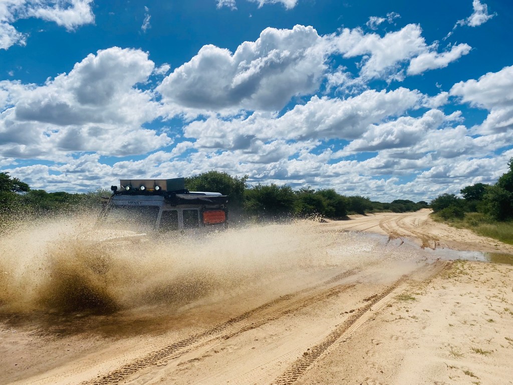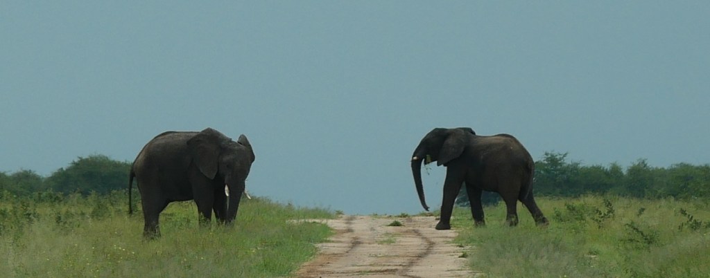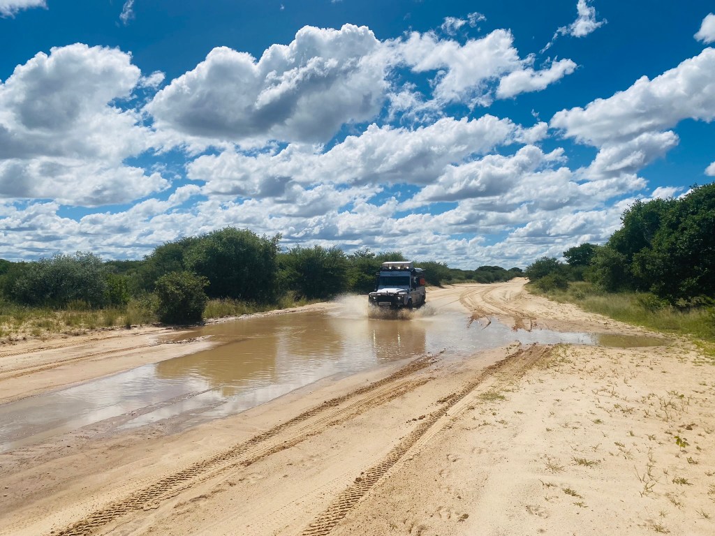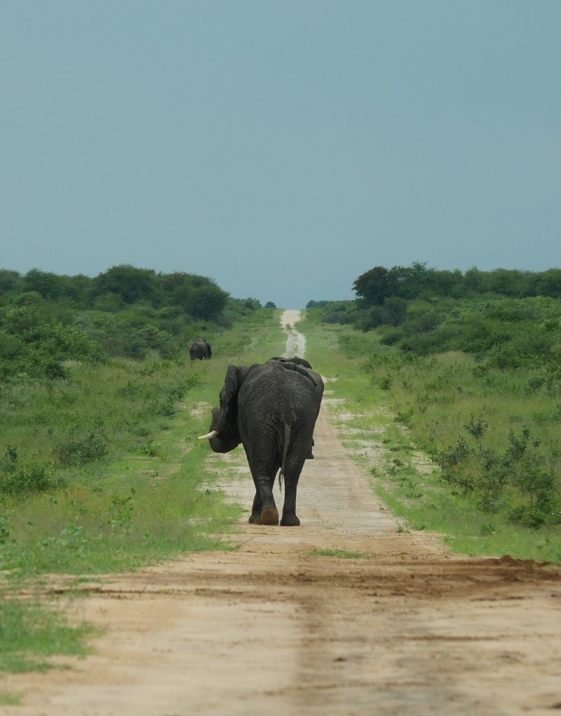 It was a cold, overcast and damp day. Khaudum National Park is so remote that it officially has more elephants in it than visitors and the sand roads are notoriously bad – in some cases non-existent. There are no maps and little infrastructure. An intrepid German couple we had met the night before had plans to drive from the south gate all the way to the north gate in their rented Hilux and were expecting trouble along the way. They tried to persuade us to travel in convoy with them to help them through the sandy, boggy roads but we were not heading that far north so had to leave them to their own devices.
