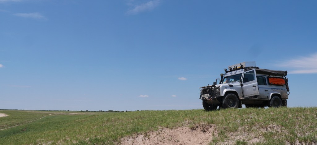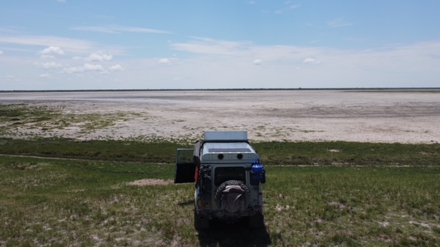 After an hour of very tough driving, our first sighting of the Pans was less than exciting – large flat grasslands with a few antelope on them. We were happy though, we´d found what we´d come for. Fortunately the sat nav had a viewpoint marked on it so, having driven 20 long, difficult kilometers to get there we decided to keep going another 4km to get to the viewpoint.