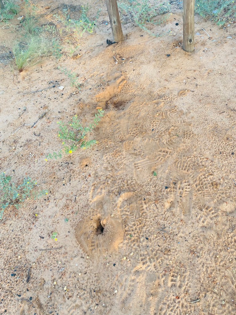 Eventually I fell asleep but the next morning I looked round for evidence of what it had been and found tracks across the sand as well as a destroyed ants nest. The Ranger popped round later that day and confirmed from the photo that we had indeed very likely been only feet away from an elusive Aardvark….