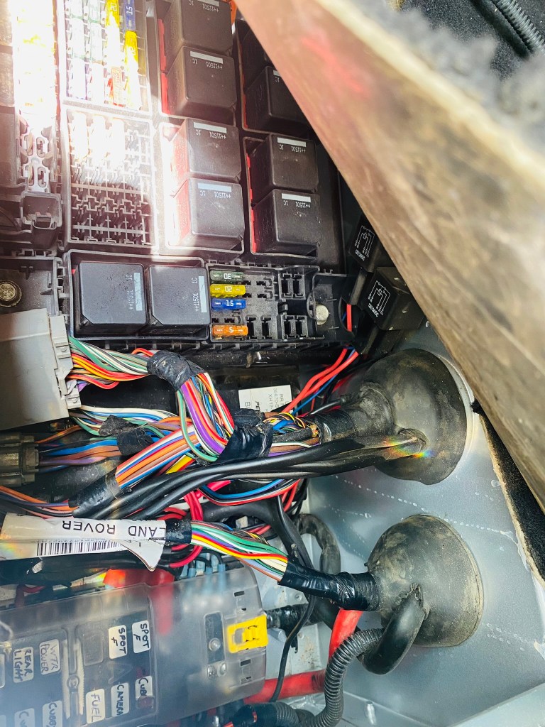 Late that afternoon we were back at the campsite and James made a start on the re-wiring.  By that night he was well on the way with having our water supply up and running but there was a long way to go yet.