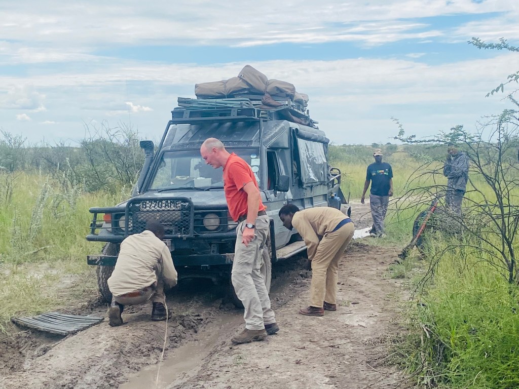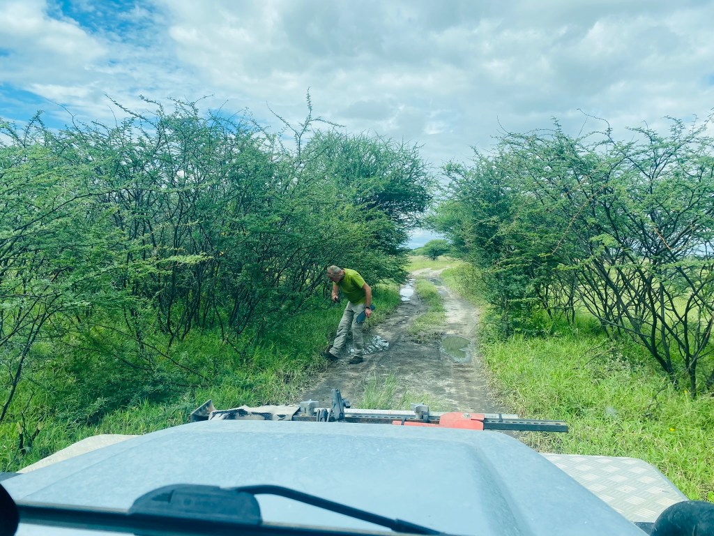 The Park is so large that each day would simply consist of doing a long, one-way game drive from one campsite to the next. Because of the rains, most of the trails in between were overgrown and challenging with few sitings likely