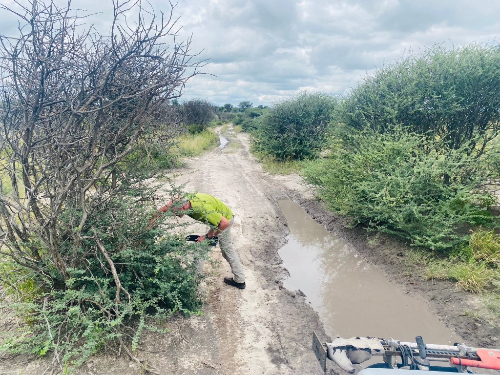 We knew we were an hour from Rakops and we knew the road from Rakops to the entrance gate was 45km of deep sand and mud. Google said it would take around 3 hours, our sat nav said half an hour – the staff at our campsite said that in the Landrover we would do it easily in an hour. We set off early in the morning just to be on the safe side.