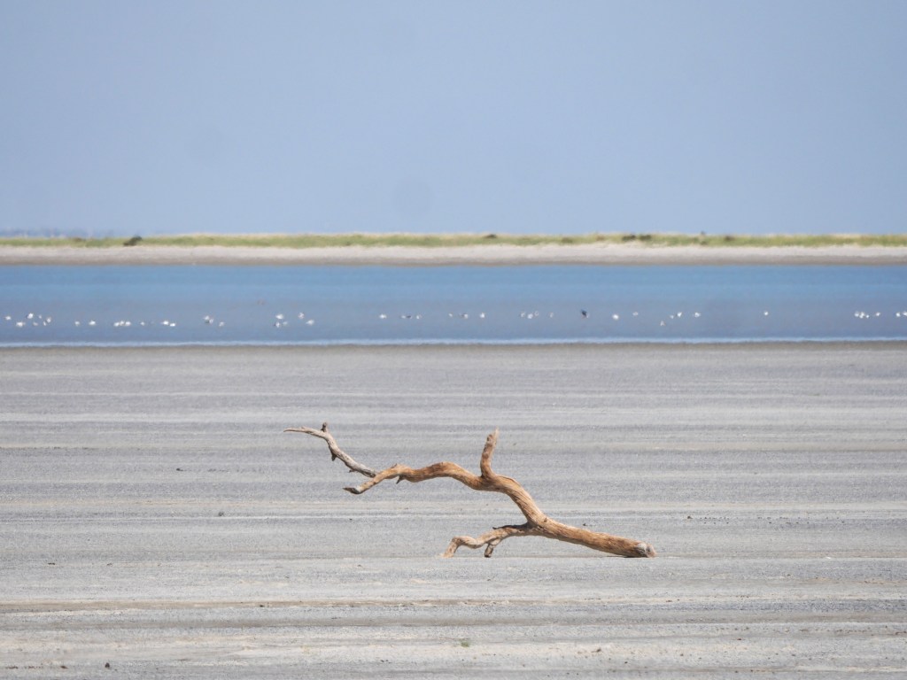 It was only right at the very end of the drive there, around a kilometer from the island itself, that we came to the salt pan. We lost the road and ended up slipping and sliding – and partially sinking – in the soft, salty sand