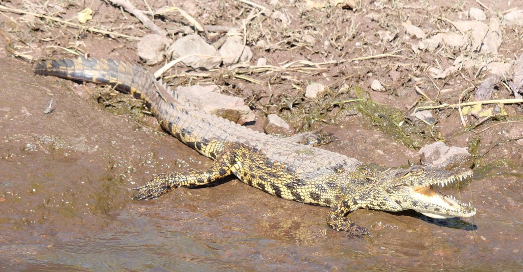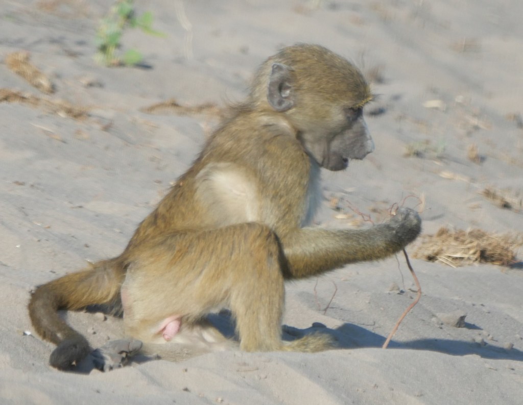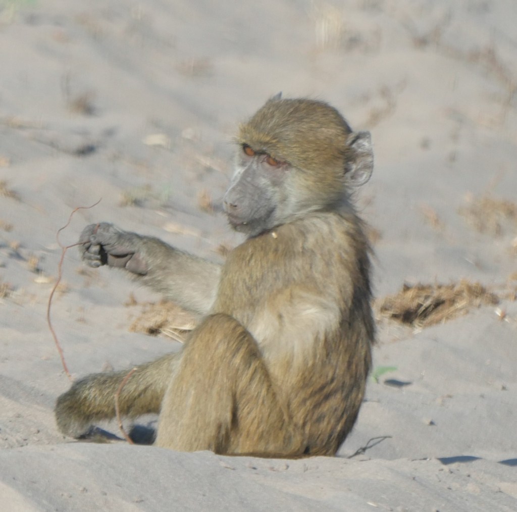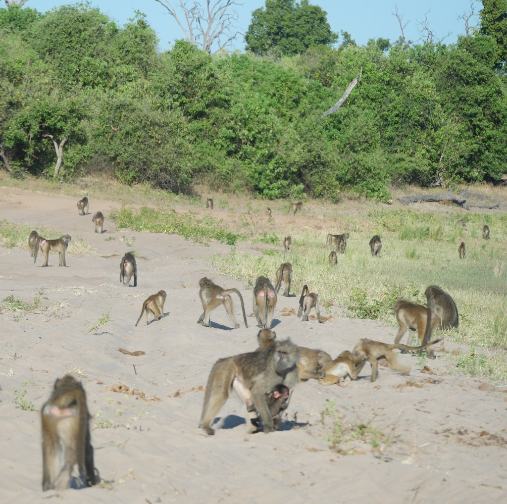 We carried on along the river banks slowly winding our way west. After about half an hour our way was blocked by a troupe of Baboon playing on the shore