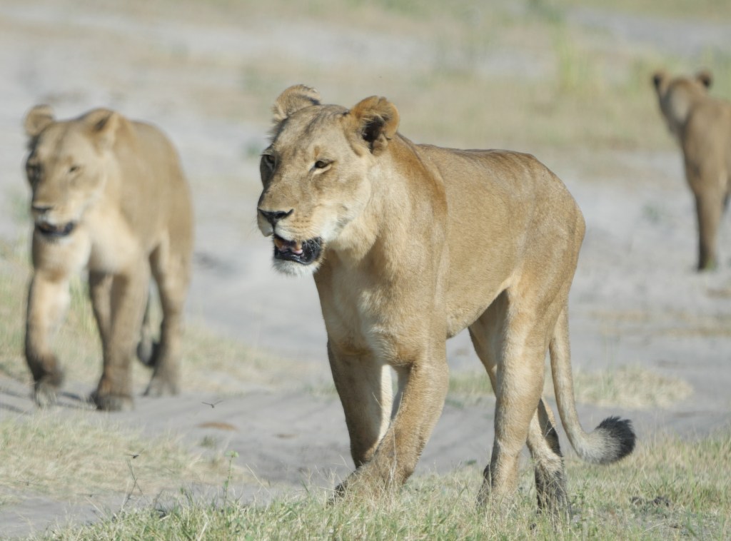 We stopped and peered at the group for a moment. I lifted my hand and pointed uncertainly. ´Is that…..??´ I stopped, surely not, there were far too many of them. But our eyes were not deceiving us. Slowly but surely a pride of 12 lions were walking along the river front straight towards us