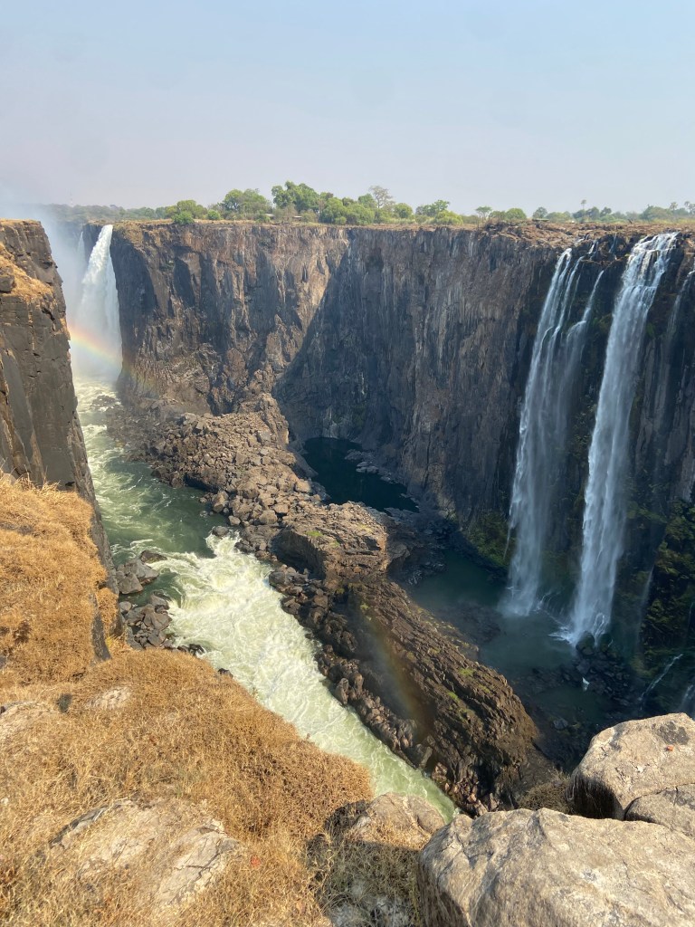 The real name of Victoria Falls is ´The Smoke that Thunders´ and it is about as apt as a name can get. Once in the national park we followed the winding footpath towards the sound of thundering water and cool, wet spray rising high above the trees