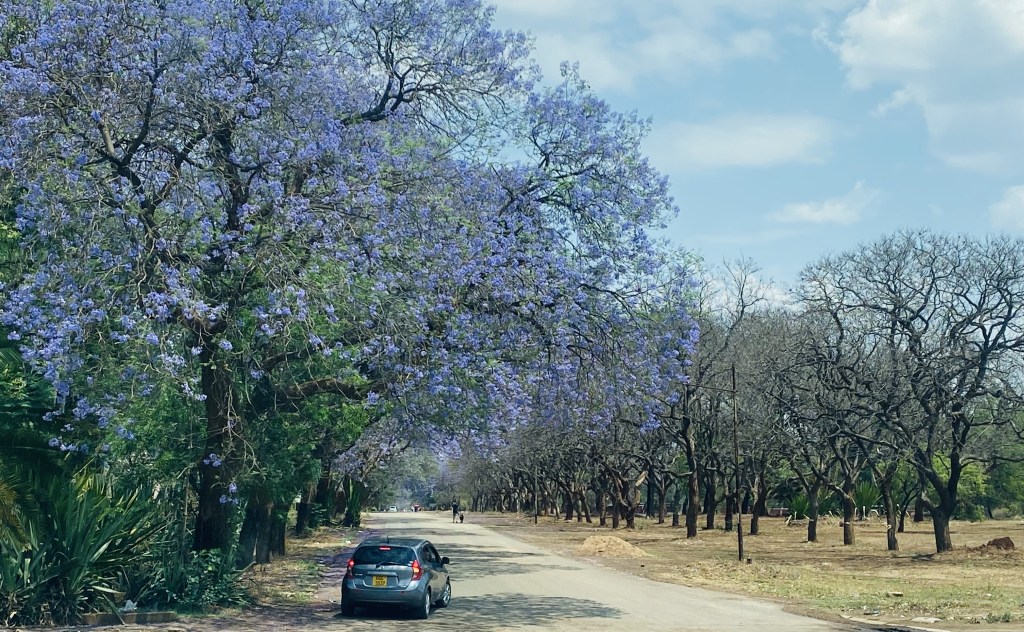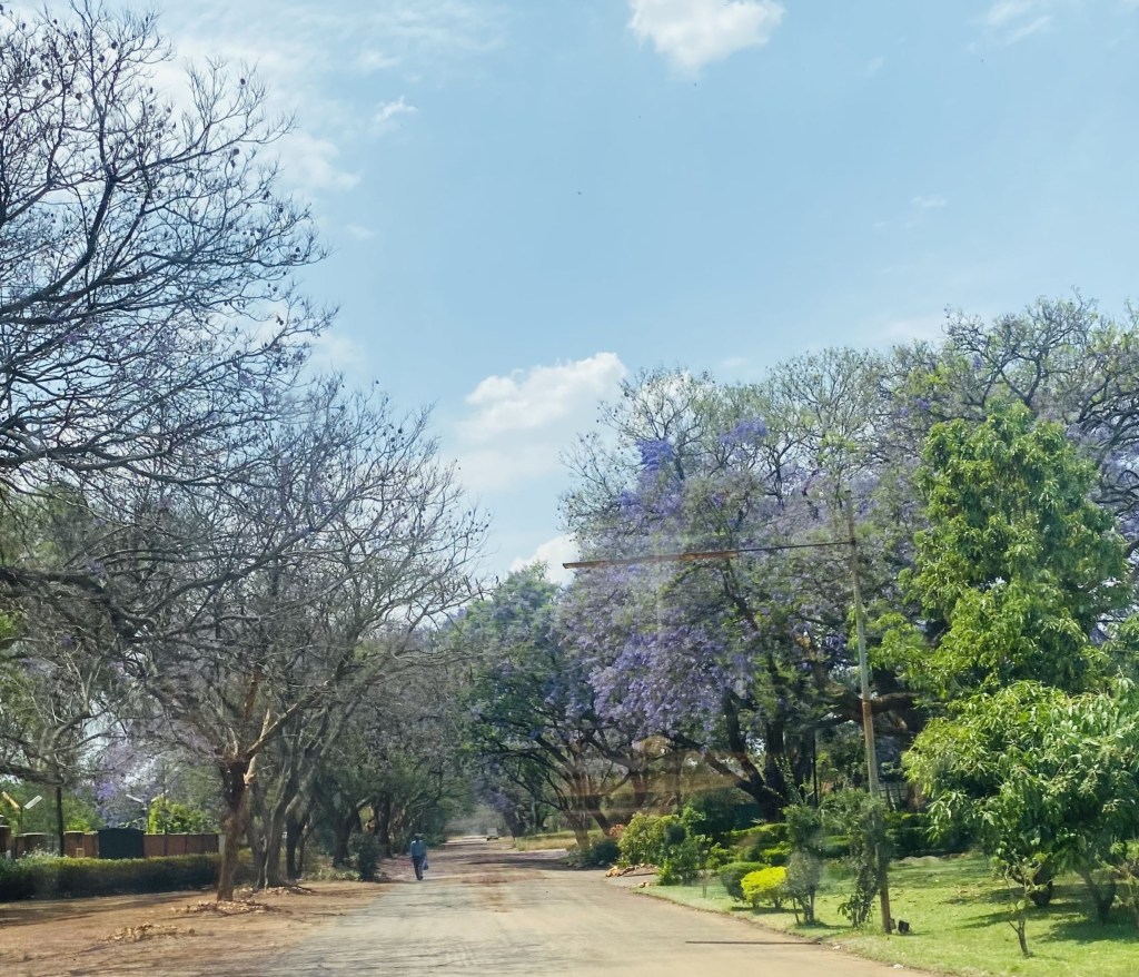 At the campsite I started chatting to the manager who told me that in Zimbabwe the blossoming of the Jacaranda trees makes everyone think of school exams as they always bloom at the same time of year!