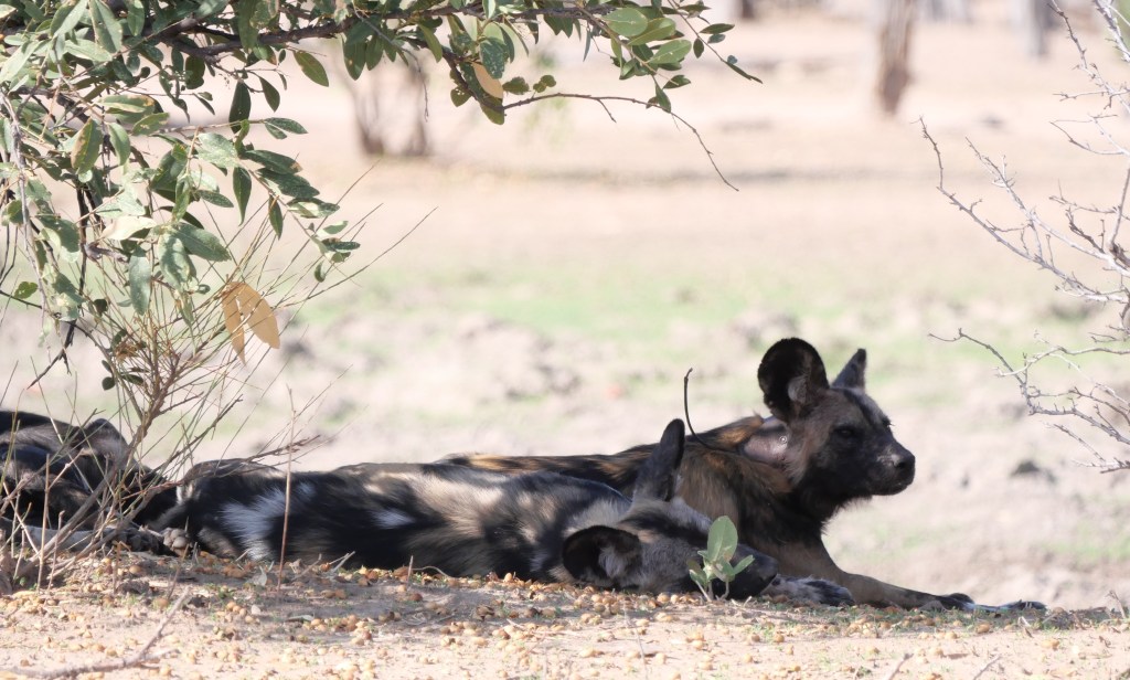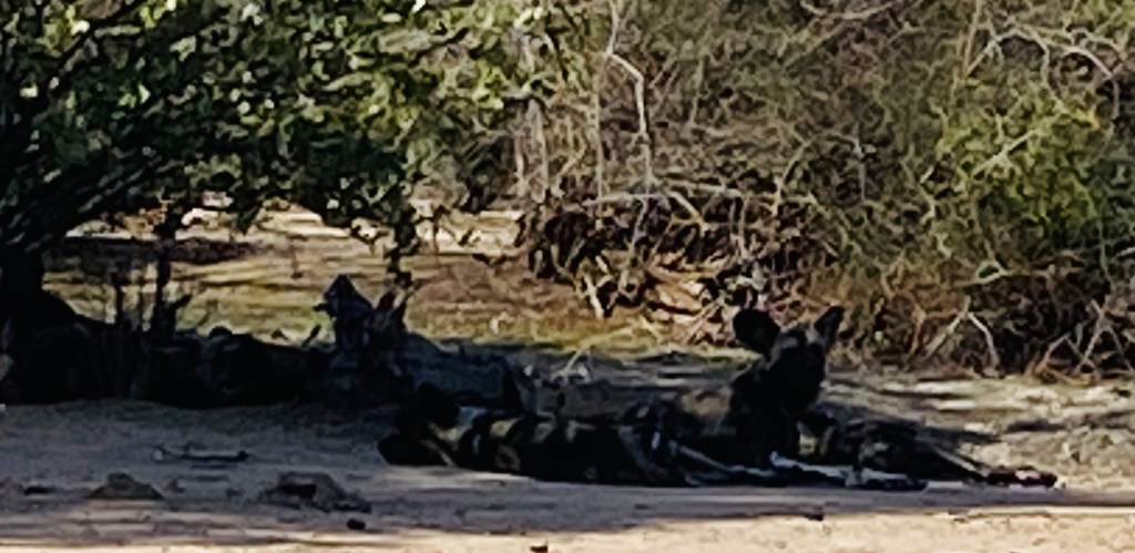 Before long our efforts were rewarded as we found ourselves standing less than 20 metres from a pack of thirteen Wild Dog resting under the trees.