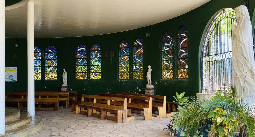 We went up to see it the day after we arrived but it was a Sunday so the people were having a service in the nearby local chapel and no-one could find the key to the main church. I poked my camera in through the gates but we couldn´t get inside to look around.
