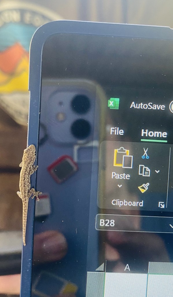 Especially when a tiny, baby gecko decided to come and help me do the accounts…