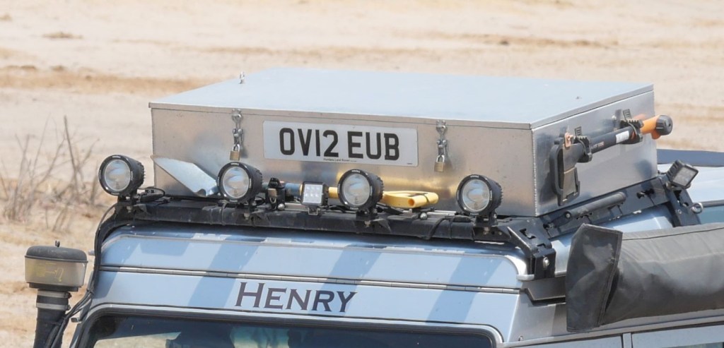 As we pulled up the security guard started to write down all our details. He looked for the number plate but, like most people, couldn´t spot it – a common problem since we moved it up to the roof box away from the air intake. James leaned out of the window and pointed ´number plate is up there´ he said. The security guard looked up, smiled and completed his paperwork.