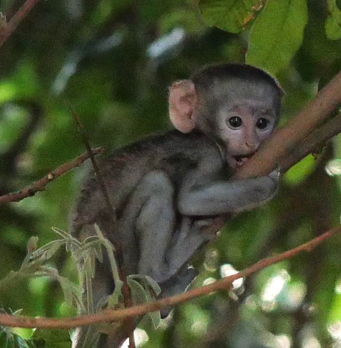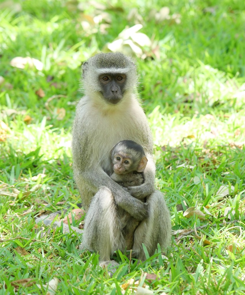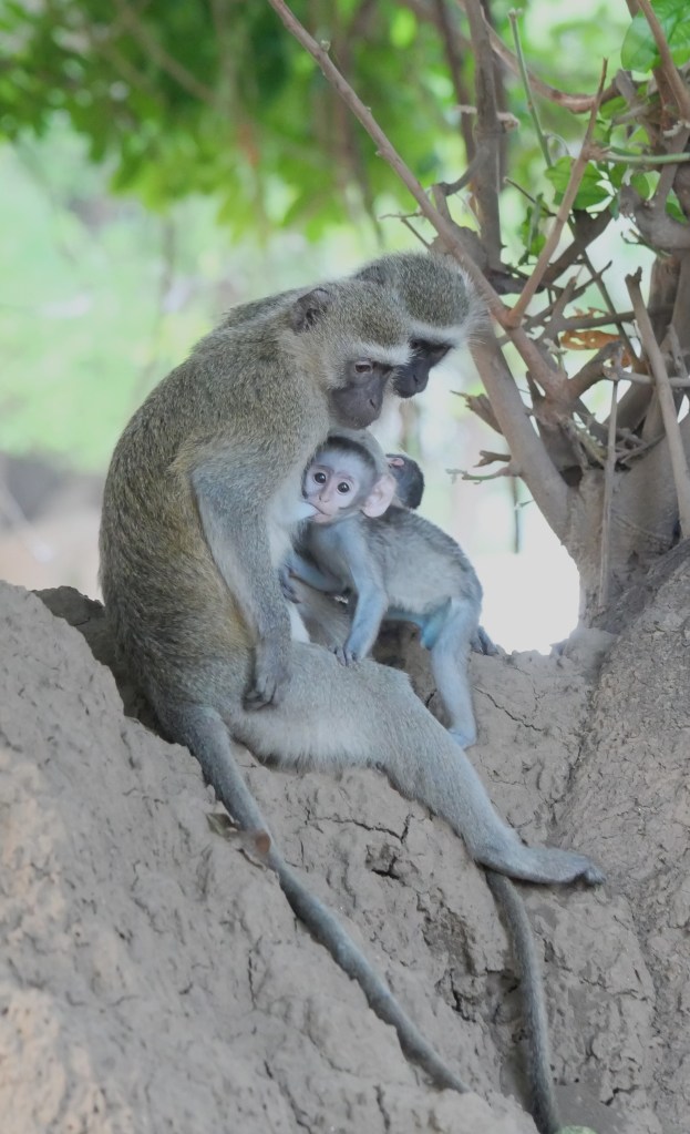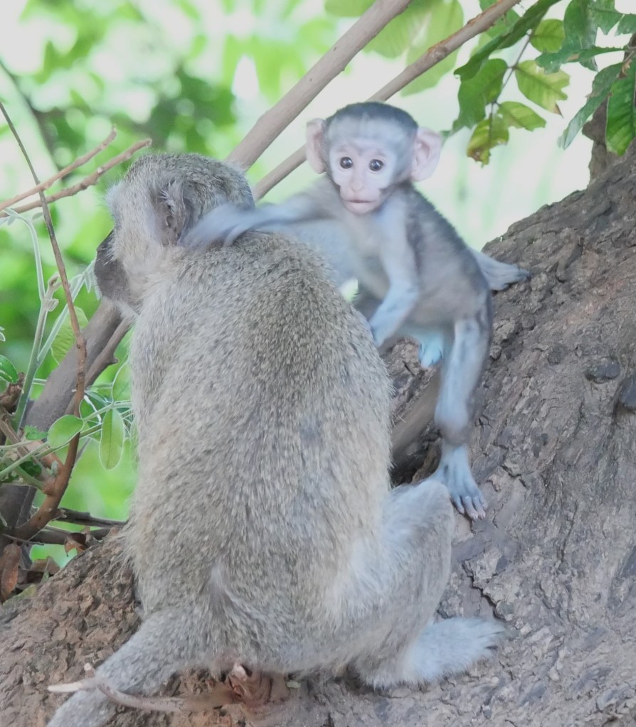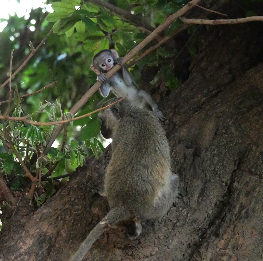 In the tree next to us were a family of vervet monkeys watching us set up with great interest