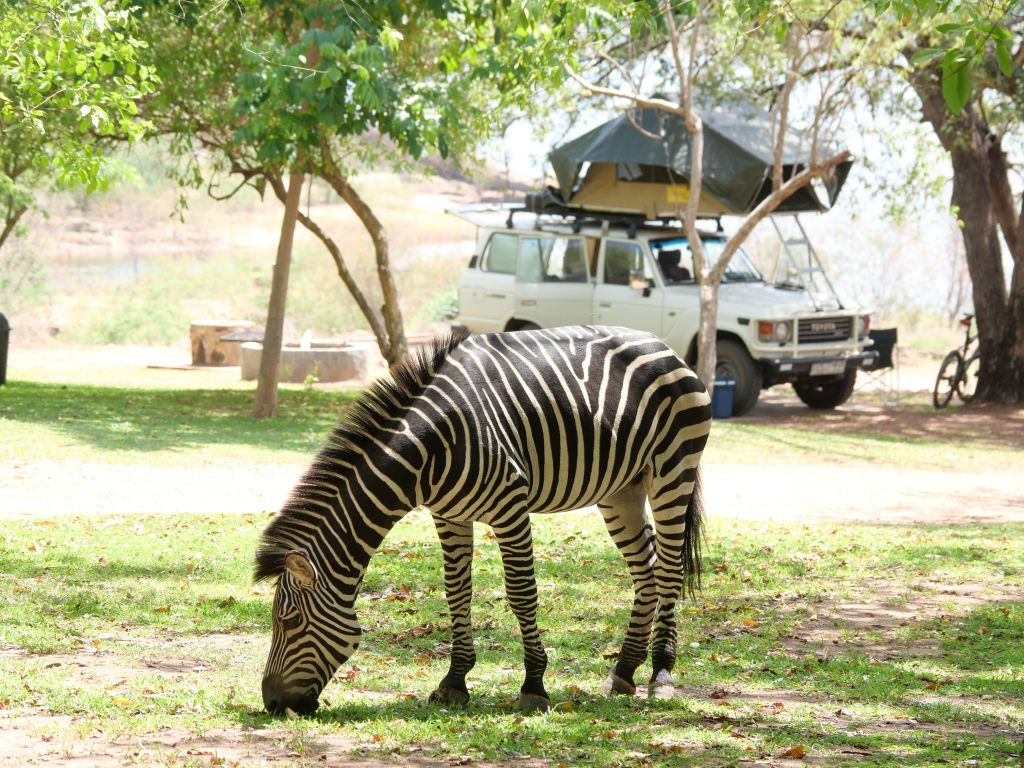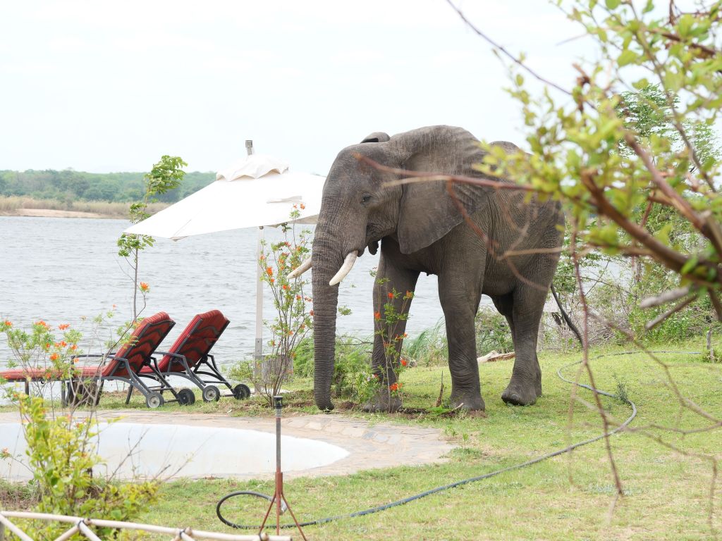 We carried on along the Zambezi river until we reached our campsite. At first it was still stiflingly hot and we were a little disappointed but before long a wonderful cooling breeze started up and we basked in it for the rest of the day, sitting by the pool and relaxing