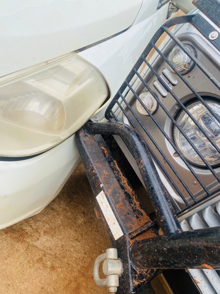 The driver had been trying to reverse out of his parking space but seemed to have even worse spatial awareness skills than me. He had turned his steering wheel far too early and crunched straight into Henry´s front bumper. Everyone was looking at us very worried