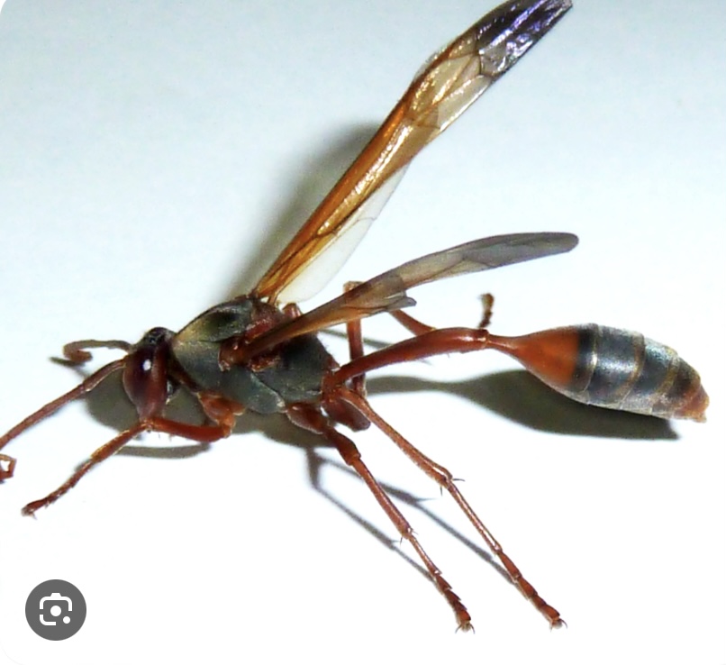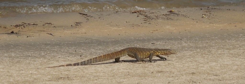 We were sitting in the beach hut later in the day when a large African wasp suddenly came flying straight down at me from the thatched roof. These wasps are very angry looking and have short fuses…