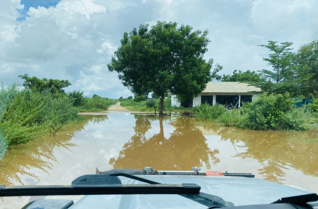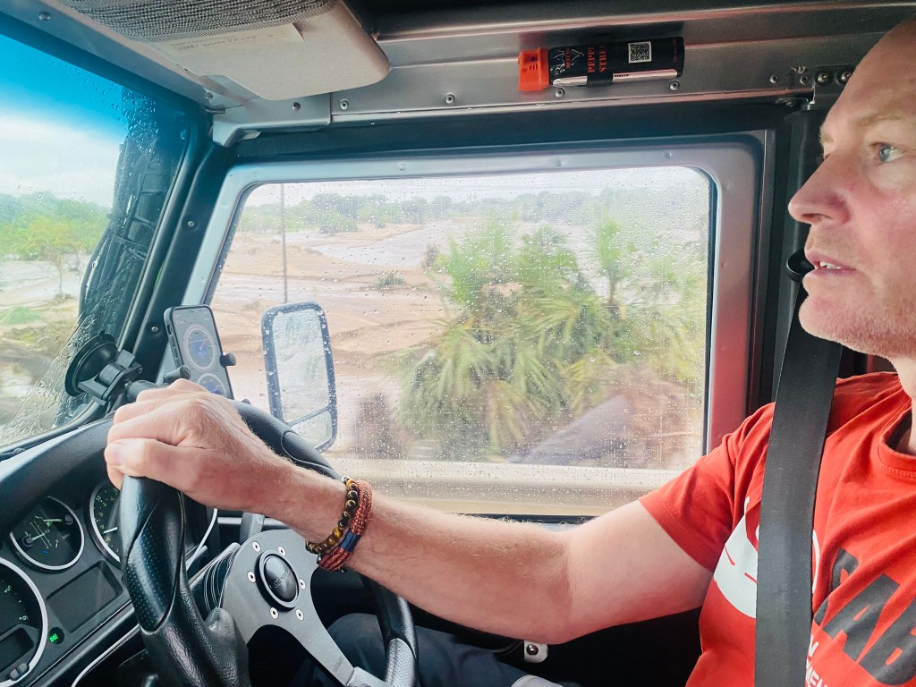 So far the journey had been fine but as we drove into the town the floods had washed away many of the roads