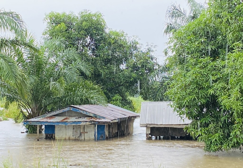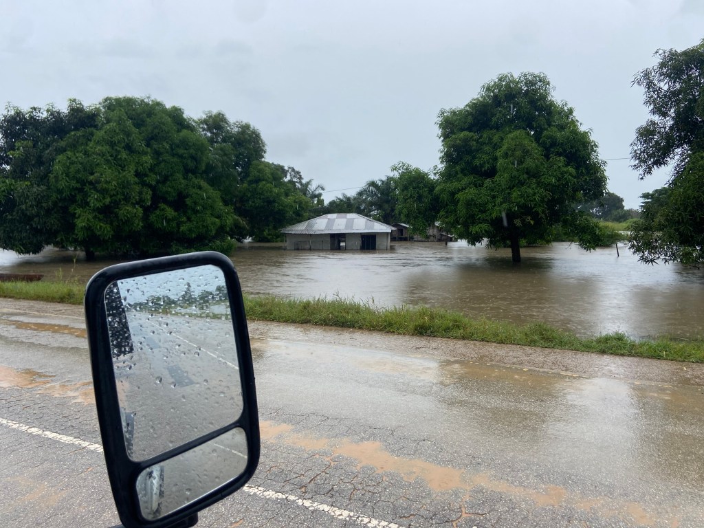 Eventually, surrounded by floods on all sides at a 4-way junction we pulled to a stop and asked the locals for help
