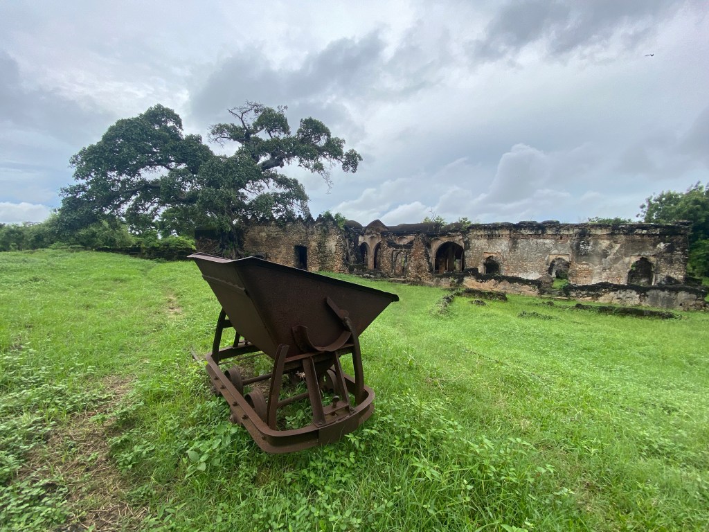 During the excavation of the site, the archaeologists had built a small track to wheel the material in large barrows up and down to the coast and one was left in the grounds. We found from the inscription that it had come from Liverpool!