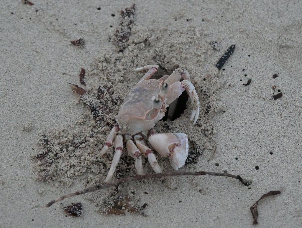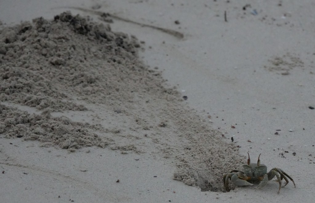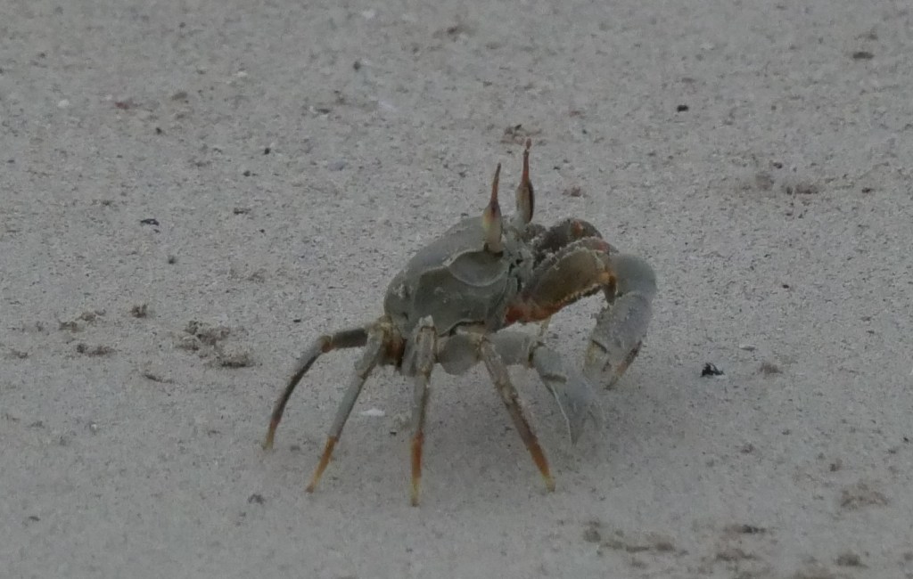 That evening the beach was full of crabs, running everywhere and ducking into their holes as soon as we tried to get close