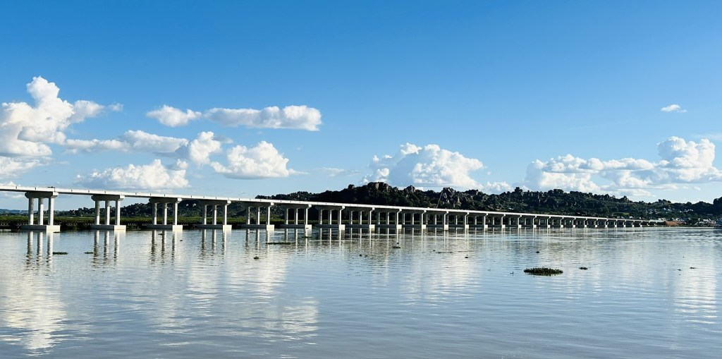 We set off early the next morning as we still had a seven hour drive ahead of us to the lake. As we got closer to our intended campsite I was looking at the maps and realised that there was a finger of the lake between us and our destination. It would be a long way around so we hoped we could go across – maybe a bridge, or maybe it was seasonal wetlands.