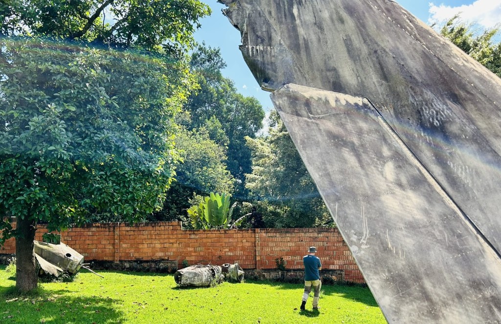 For a small amount extra on the ticket price we were taken to see the site of the 1994 plane crash in which the president was killed and which was the start of the genocide. The pieces of the wreck have been left where they fell