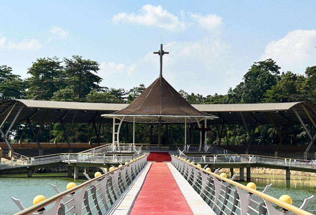 Our guide stood us in one spot and talked at us for about 20 minutes about Christianity and his book which he had on a USB stick if we wanted to buy it. He pointed to the reflection pool and told us that four Popes had visited the site and that over 1 million people come here to worship once a year (interestingly, this was the public holiday that had delayed us seeing the gorillas)
