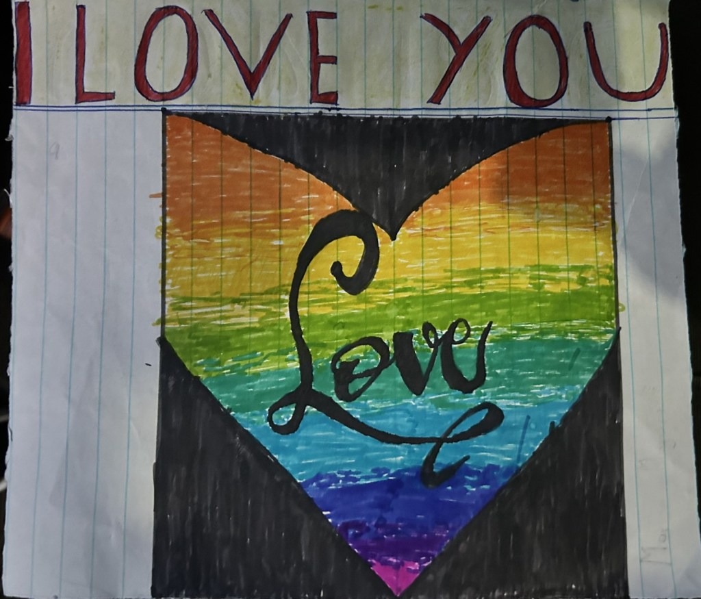 She asked whether we were explorers like Stanley and when I said yes they all looked at us in awe. She asked why we explored and whether it was to see the animals so I told her about our visits to the gorillas and the Queen Elizabeth national park. I said that their country was beautiful and we loved being there. Their eyes were wide with excitement and they all kept reaching over to touch me. The eldest girl then handed me a piece of paper saying that she had made it for us. As I unfolded it I had a tear in my eye