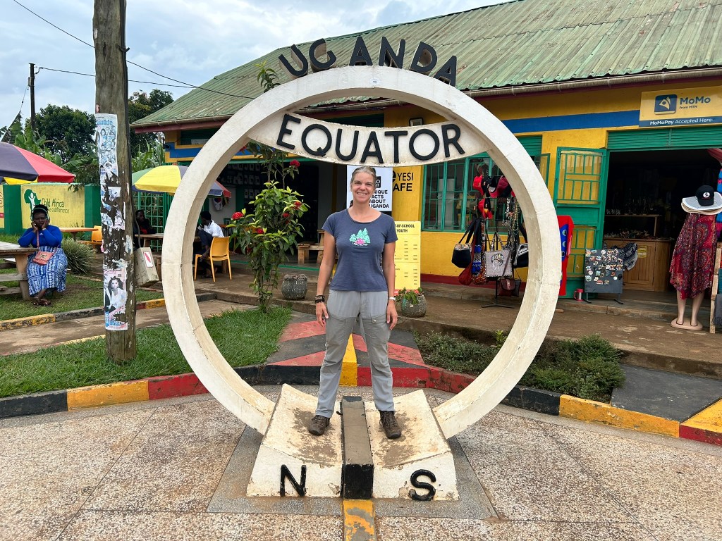 Our next stop was to be the Mabamba swamps to see the famously rare Shoebill bird. But first we had an appointment with the equator. Having had such an anticlimax last time we were determined to do it properly. So we drove an hour west past the road to the swamps to go to the Equator Restaurant.